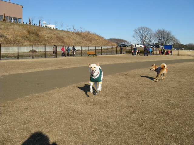 初ドッグランは青い空の下で楽しそうですね~