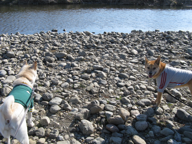 ちょこっとだけど川原を歩いたり、風は冷たく寒かったけど犬たち大喜びで楽しかったです。