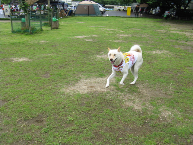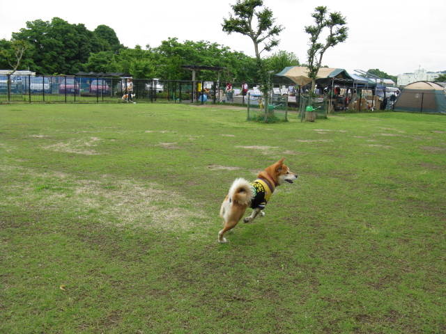 こんなに広い芝生のドッグラン、遊んでるのは空グループだけ!3ワンの貸切りでした~