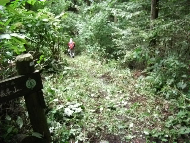 入り口付近はかなりの草ボーボーで道標も埋もれちゃうほど