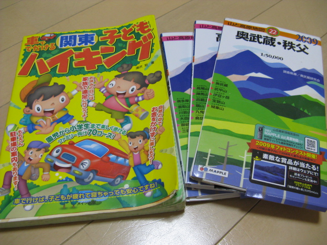左側の子どもハイキングはガイドブックですけど、右側の三冊は地図ですよ~(*^_^*)