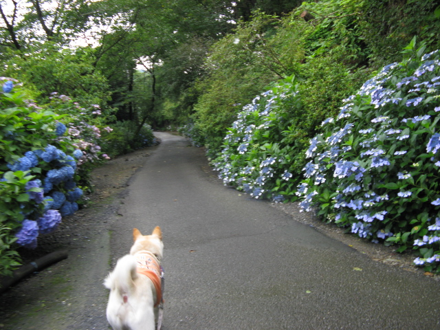 そして今が身頃の紫陽花の道がず~っと続きます。濡れた紫陽花がとってもきれいです。
