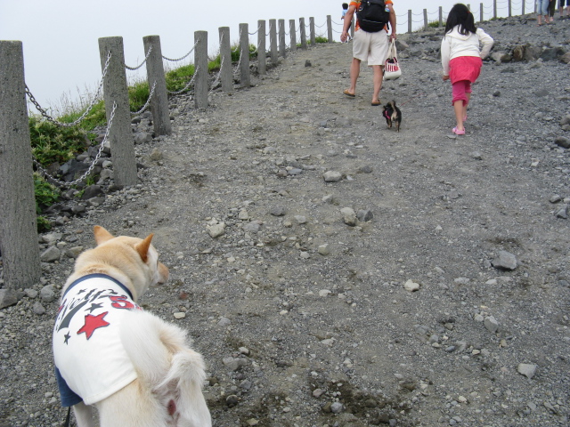 サンダル履きの親子連れも、極小チワワちゃんもそろって山頂を目指しますよ~