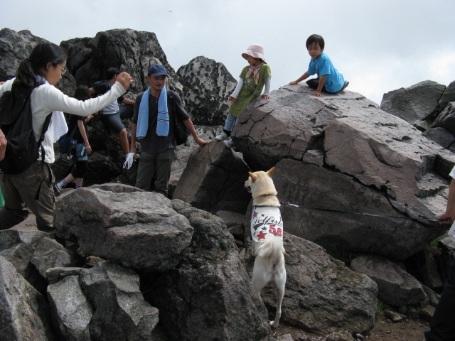 一緒に登ってきた人たちと空。励ましあってみんなで登りました。空は人気者です♪