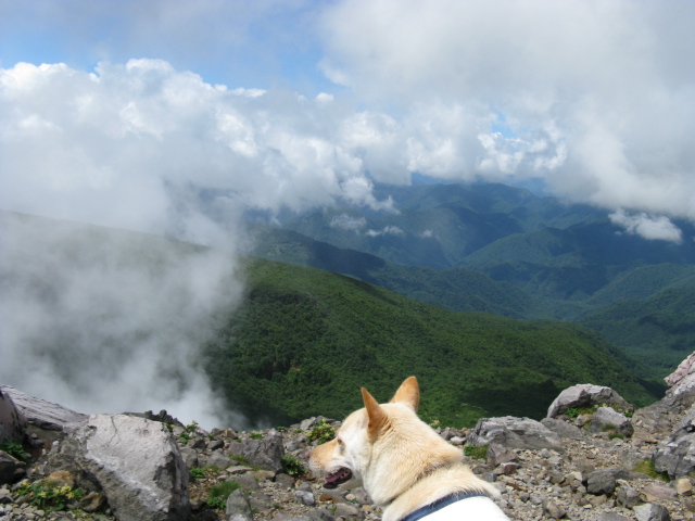 空の茶臼岳登頂(1,915m)です!高い場所好きな空、一番てっぺんまで登ってきて満足そう^^