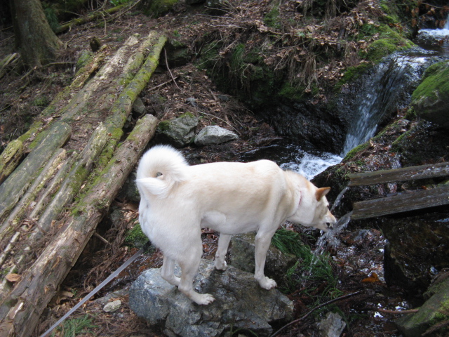 上りのコースは沢に沿って進んでいくので、名水大好きな空は所々で水分補給します。