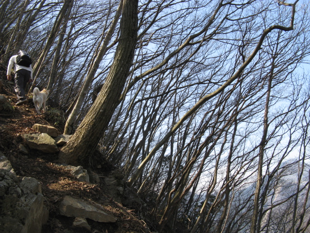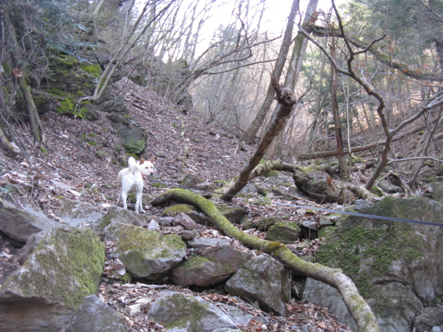 もうすぐ山頂ってところで待っててくれました♪ 私が見えなくなると空は歩かなくなっちゃうんだって^^
