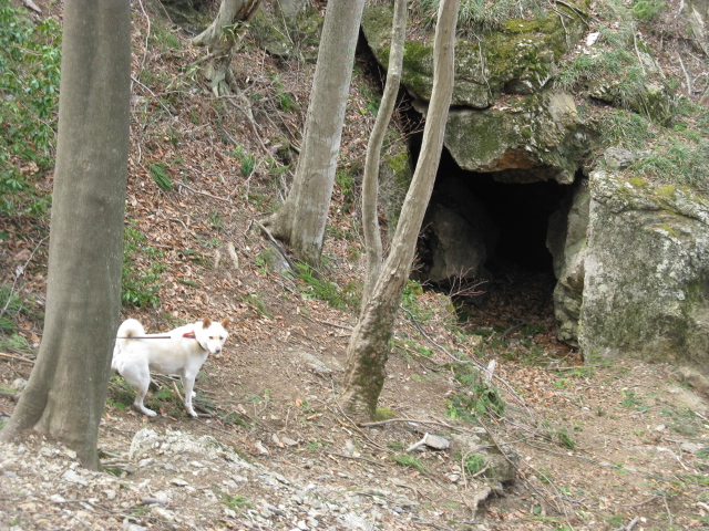 冬眠明けの熊さんでも出てきそうな岩穴。