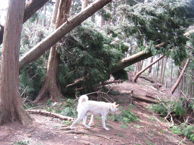 帰りのコースは倒木だらけの荒れ荒れ・・・