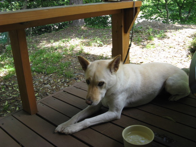 『どこかテラスでもある場所で食べればいいよ!長瀞あたりなら犬と一緒でも食べれる場所があるだろ~』