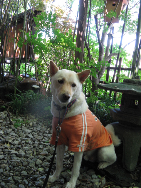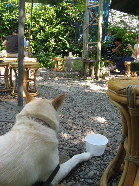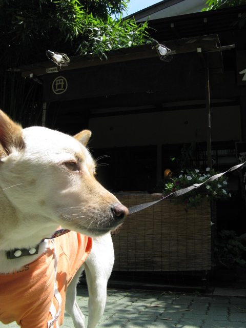)ワンコはテラスでOKの丹一さんです。