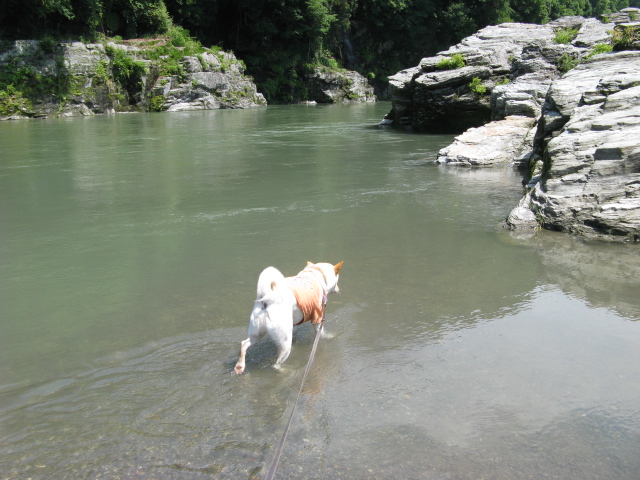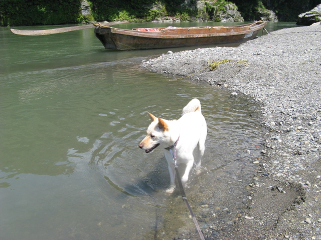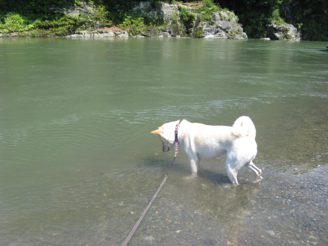 リードを持って岸を歩いている私たちは暑くて暑くて倒れそうでした(T_T)空と一緒に水に入りたかった・・・