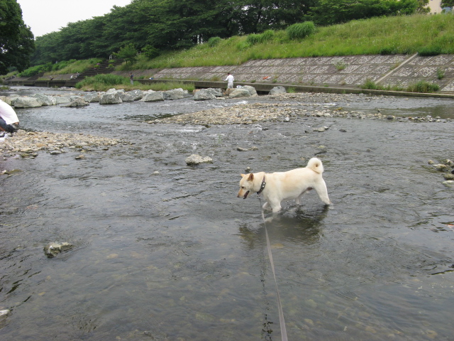 リキちゃんも空に付いていくようにすんなり入水。慣れない川遊びでもちっとも動じないリキちゃん・・・