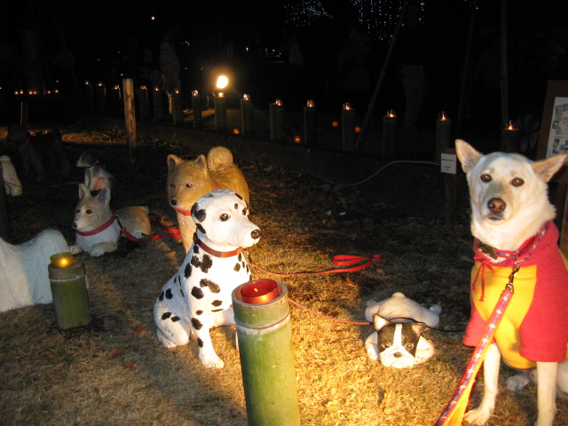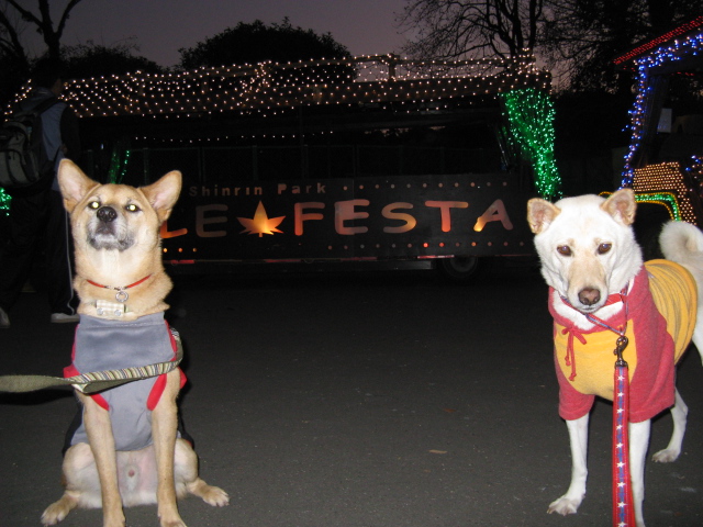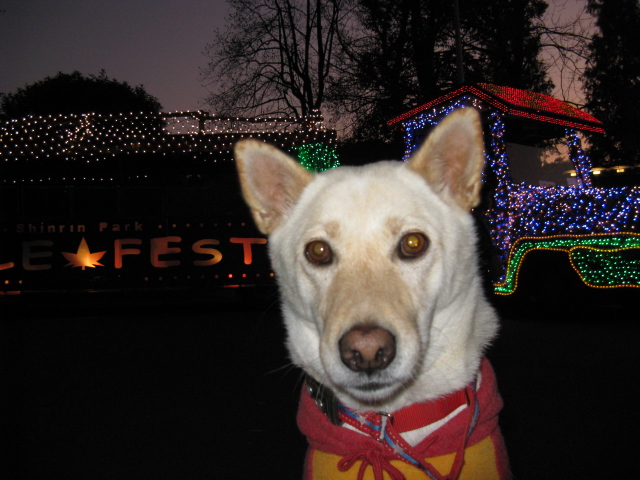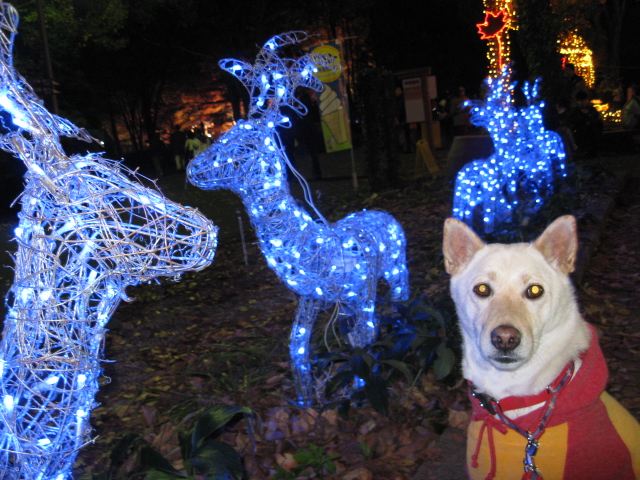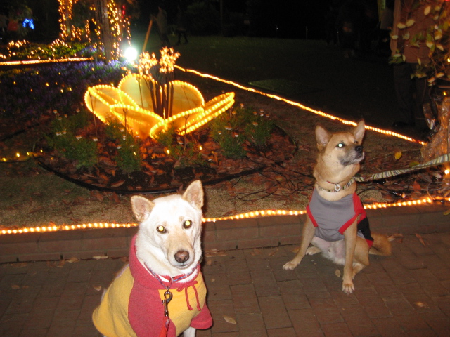 妖精さんたちのイルミネーション、空とリキちゃんもまるで絵本の中に入っちゃったみたいに