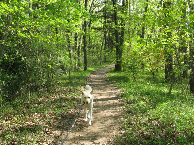 この日はドッグランへ行かなかったし、森の中の木漏れ日コースを選んで歩きました。
