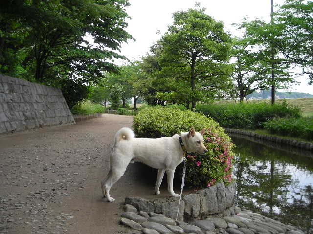 今日もお水の練習したかったけど、公園の池は犬禁止!残念です。