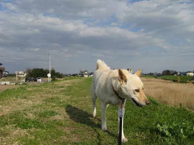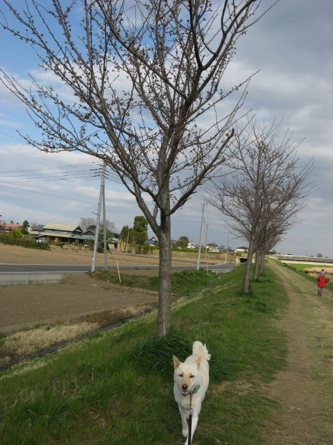 桜の花はまだだったけど、土手の草はどんどん伸びてきて、青々してきました。