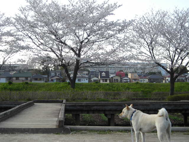 待って待って夕方、やっと風が治まって近所の土手で花見