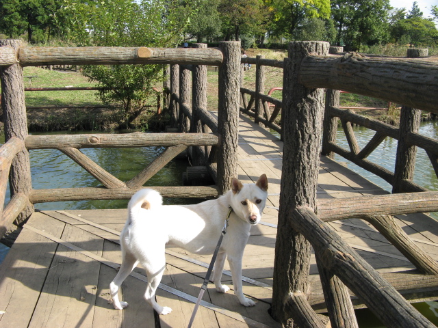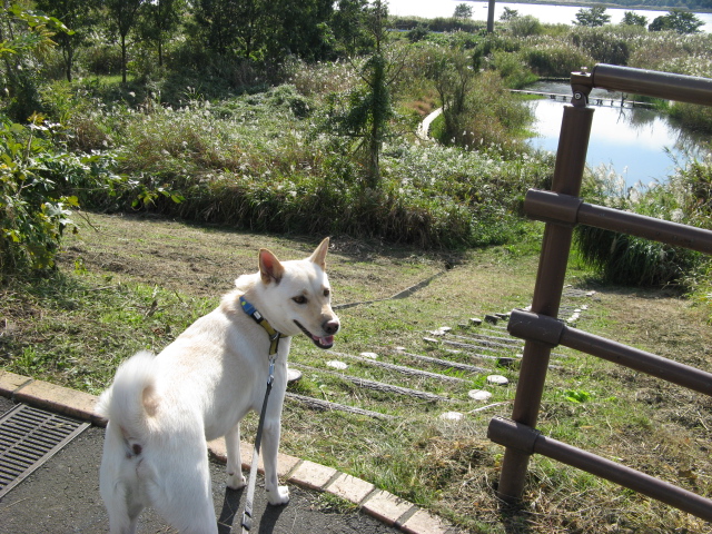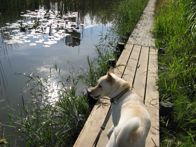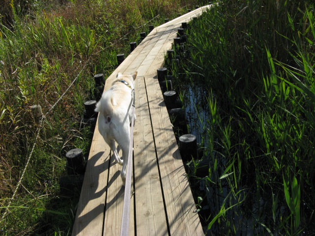 空の好きな木道だぁ^^ビオトープになっているのかな?空ったらすごく嬉しそう♪