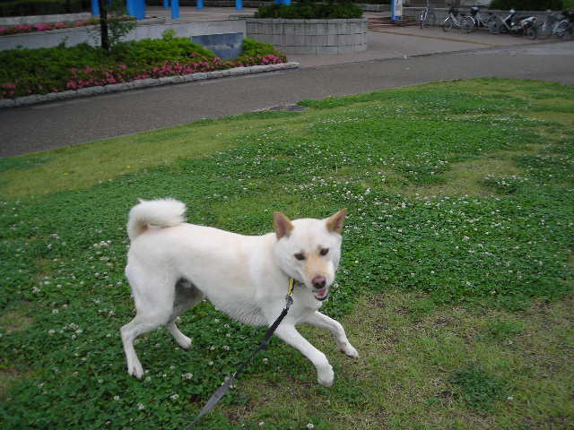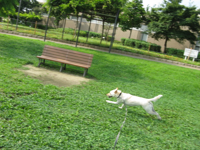 一通り走り終わると、自らベンチの前で立ち止まり、休憩&おやつタイムの催促です(^_^;)