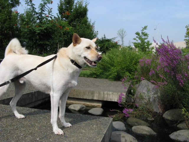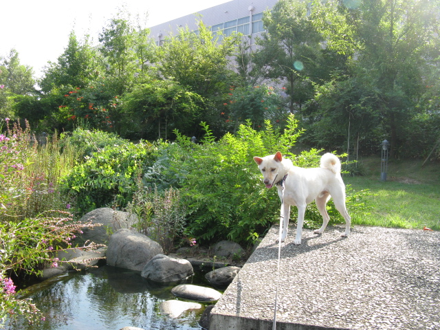お水に入りたくてウズウズ空。ここは人もワンちゃんダメなんだよ~入れないよ~
