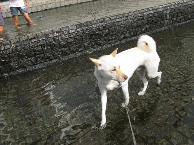 犬は入れないでくださいと書いてありますので、こぼれたお水で遠慮がちに遊ばせてもらいます♪