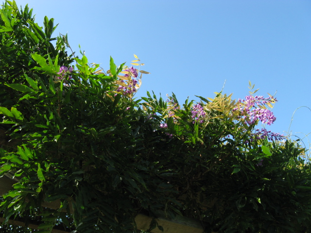 春は藤がきれいなこの公園、なぜかこんな時期でも花をたくさんつけていました。四季咲きなのかな~