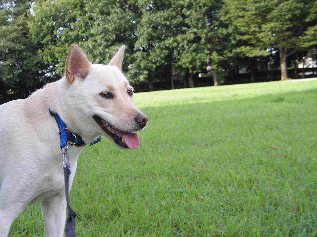 広い原っぱが大好きな空。家の中にいる時と表情が違うのです。