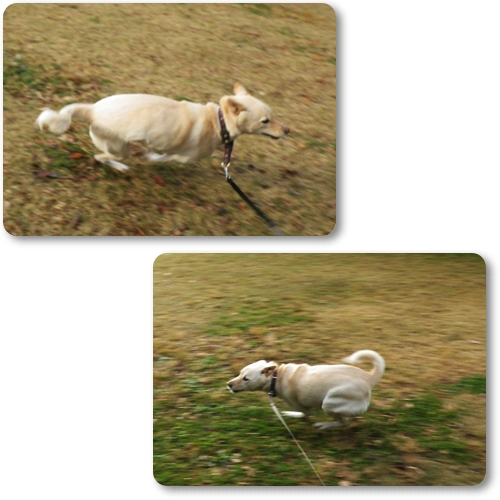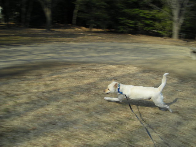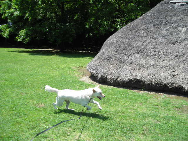 嬉しくって、芝生の広場でグルグルダッシュ