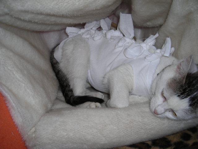 獣医の先生が作ってくれたものより、もっとハイレグちっくに作ったので、とても動きやすそうです。