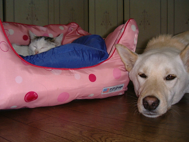 ママとは離れちゃったけど、毎日お腹いっぱいのごはんと暖かい湯たんぽ・・・・幸せ