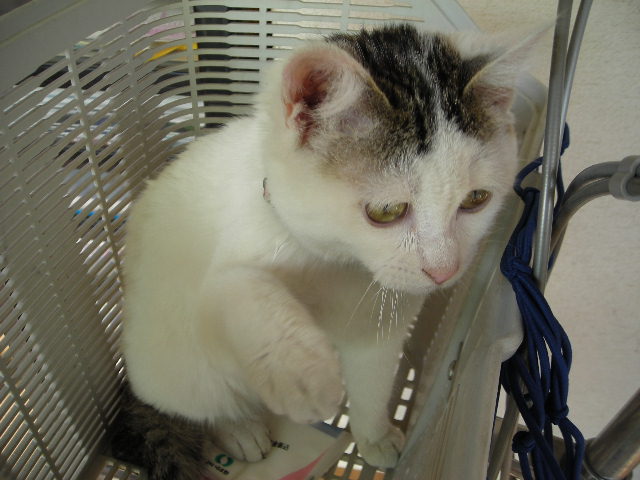 自転車のかごにもひとっ飛び。