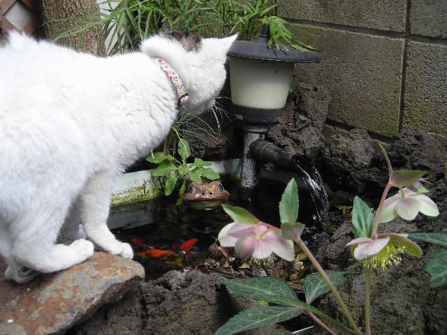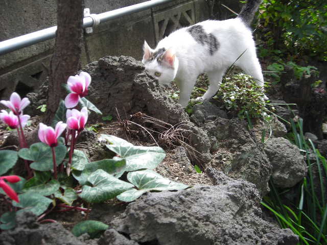せめて庭だけでも・・・と思っても、猫のジャンプ力はあなどれません(;^_^A。。。