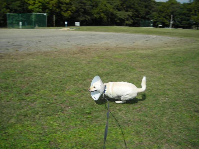 エリザベスカラーつけたままだと、走ってる時、かなりの抵抗が感じられる気がするんですが・・・・・・、平気そうですね。