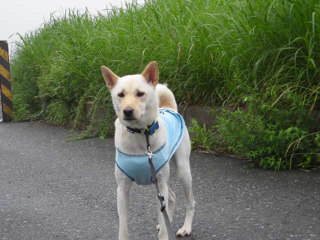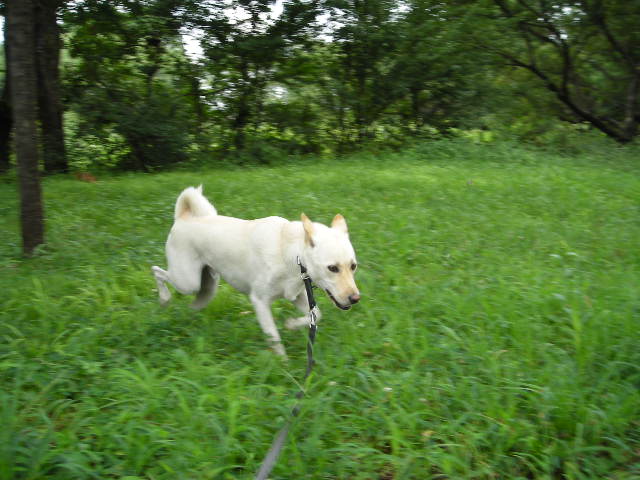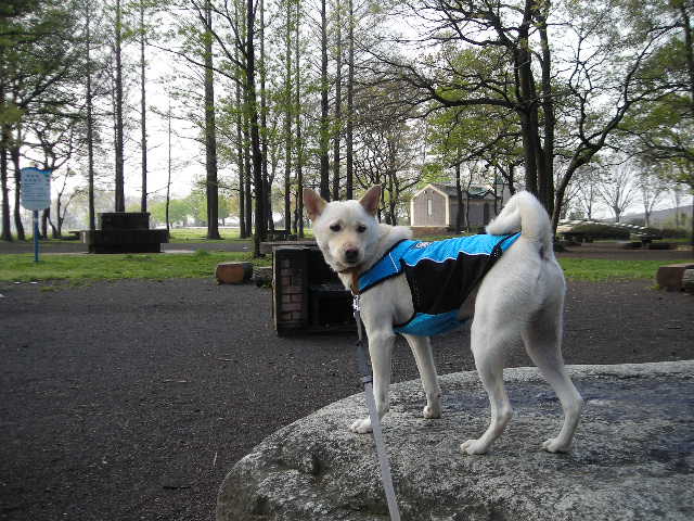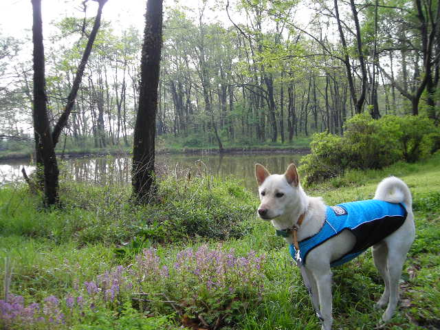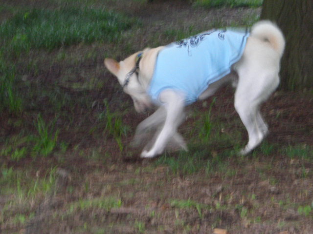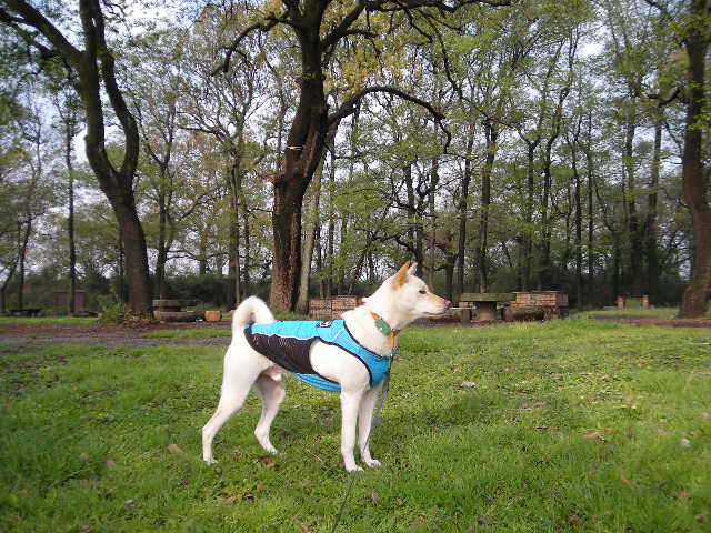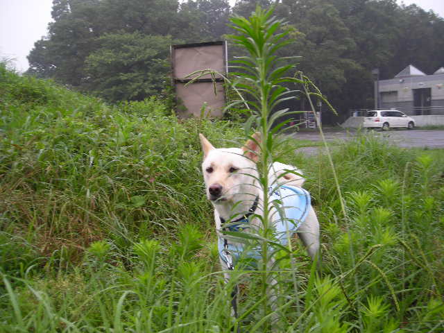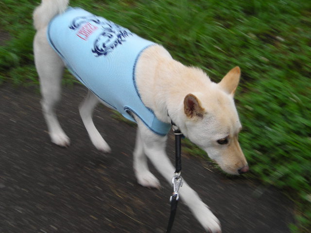 この公園は草の背が高いのでカイカイ防止のためお洋服を着てお散歩に出ました。