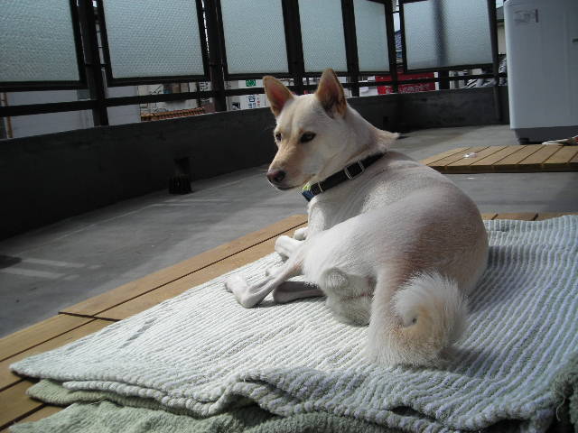 朝のお散歩が終わると、ご飯を食べて、さっさと2階のベランダへ