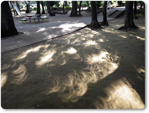 空も日食を見ることができましたよ。木漏れ日日食です♪