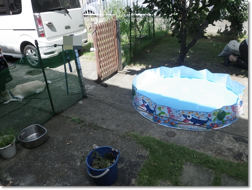 おーーっと、その前に、パパさんが物置から楽しそうなもの取り出してお水をはって