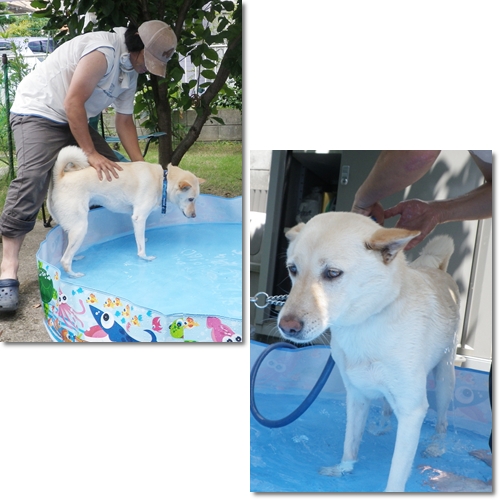 せっかくプールを張ったので、もったいないのでこのままシャンプー。