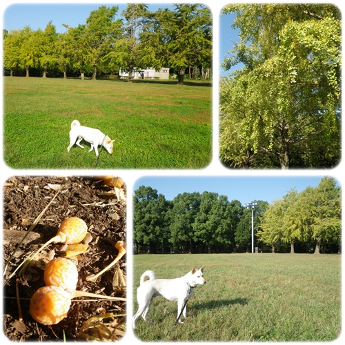 イチョウが色づき始め、空と私にボトボト当たるほどたくさんの銀杏が降ってきました。
