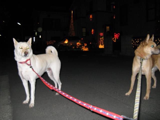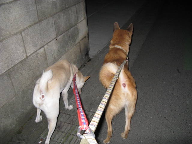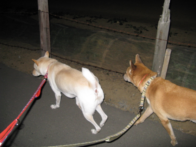 リキちゃんはお部屋でおしっこができないので深夜にもお散歩にでかけました。