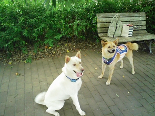 木陰があまり無いドッグランだったから、2頭とも走ってくれたのは最初だけ(^^ゞ
