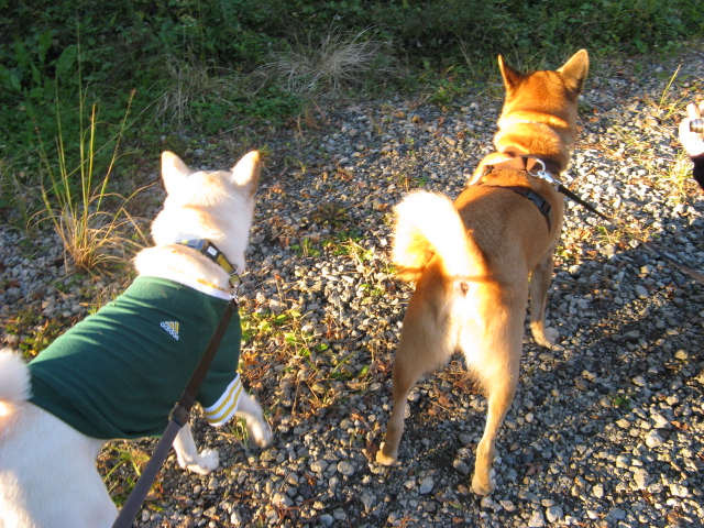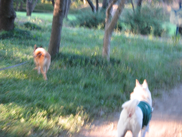 とっても仲良しのこのおふたり・・・一緒のお散歩が嬉しくって嬉しくって喜んでグングン歩いてしまうため撮れた写真はお尻ばっかりです(^_^;)