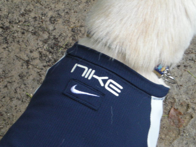 空ちゃん、すっごい似合ってる!!ナイキのワンコ服なんて、ちょっとセレブ(?)な感じがしますね(^0^)いいなあ、私もオーダーメイドでチェリーの服作ってもらいたいなあ・・・私のタンスに溢れる、B'zのツアーTシャツとかで(笑)