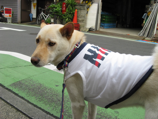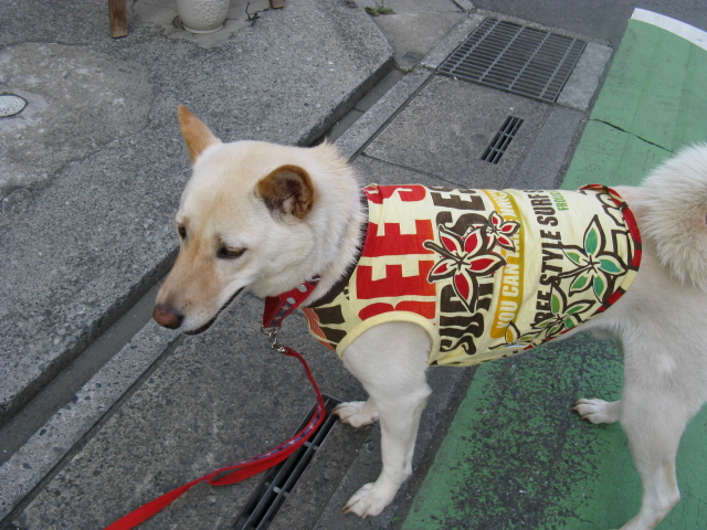 めっけもんさんで買ったお洋服をそのまま犬服にリメイクしてもらいました!オールめっけもん製です♪