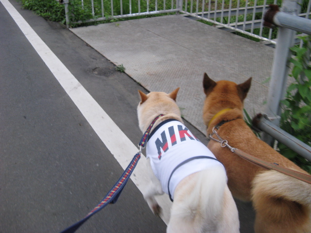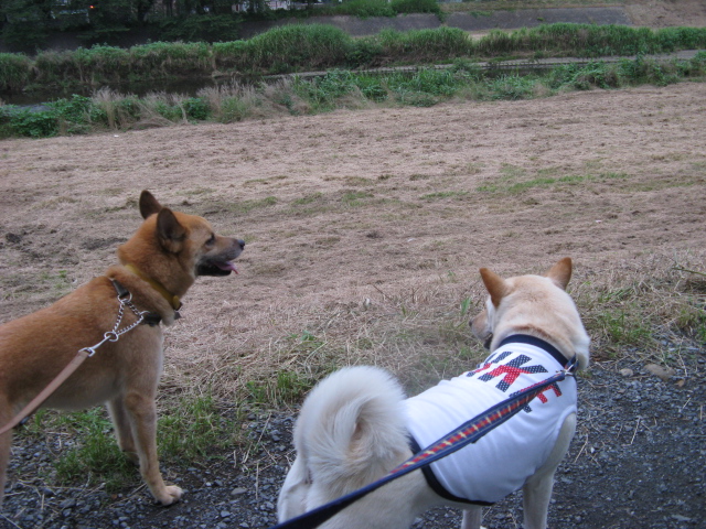 しばらく近所を一緒にウロウロお散歩したけど、私と空の顔を見たらどこか楽しい所へ行けると思ってるリキちゃん。