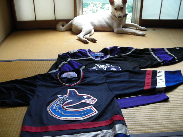 息子が小さいときに練習で使っていたアイスホッケーのレプリカジャージです。