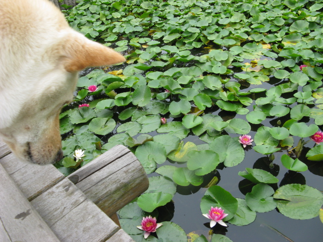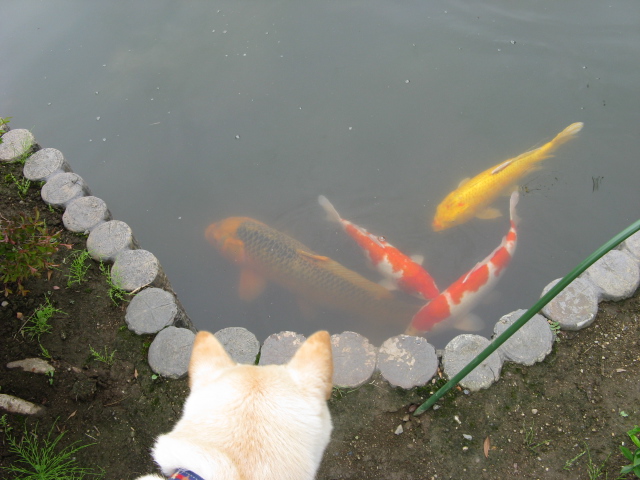 次に空が見てたのは大きな鯉さんたち。餌が欲しいのかな?空の後をずーっと付いてきて、