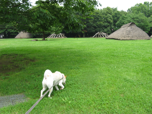 空の毎日の散歩は、こんな草地の公園へ行くことが多く・・・