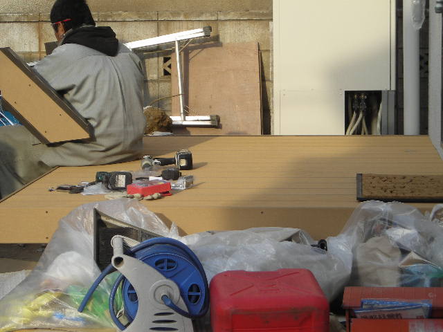 玄関の隣になります。ただいま設備屋さんが一生懸命ステップを設置中!